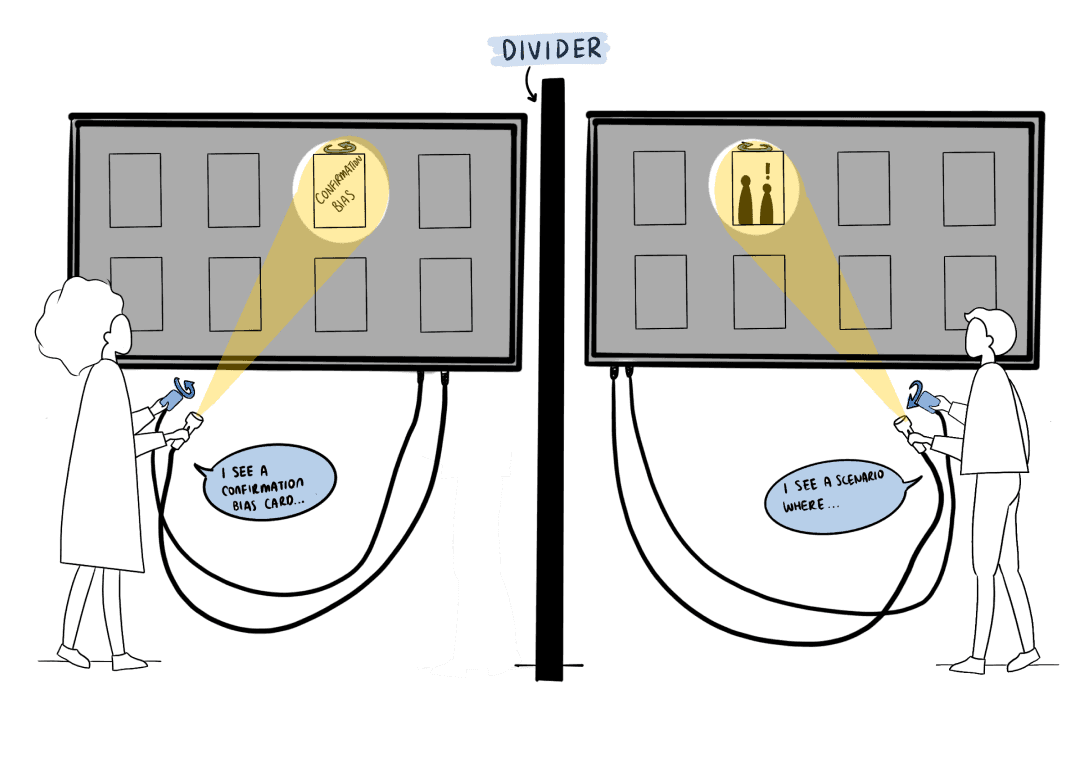 Players must work together and use clues and exploration to match a “bias” description card with an illustrated scenario card.