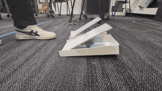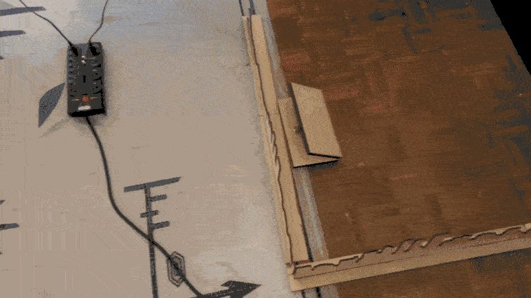 WoZ Setup: A CPX, connected to a battery pack, was secured underneath the balance board to simulate activation and input