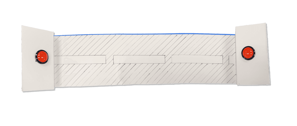 A low-fidelity controller designed to look like a road, featuring two elevated buttons on each side of the pathway. Players shuffle from side to side, pressing the buttons to navigate the avatar left or right.
