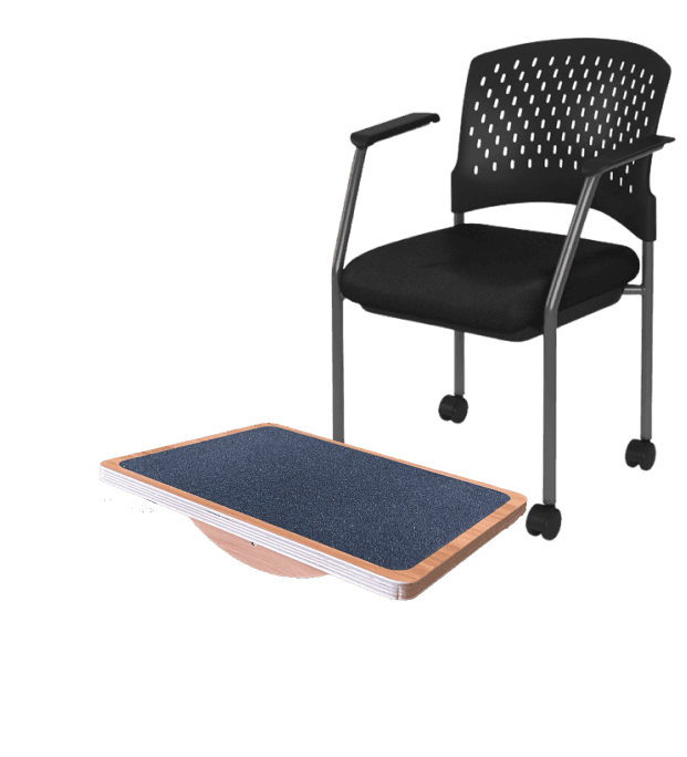 A wooden balance board designed for players to sit and control by placing their feet on it. Shifting weight left or right moves the avatar in those directions on the screen.